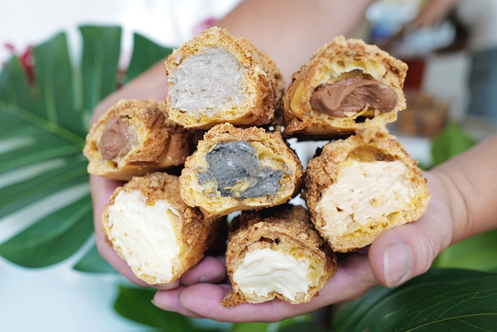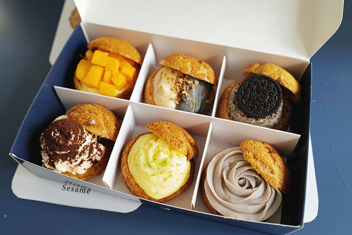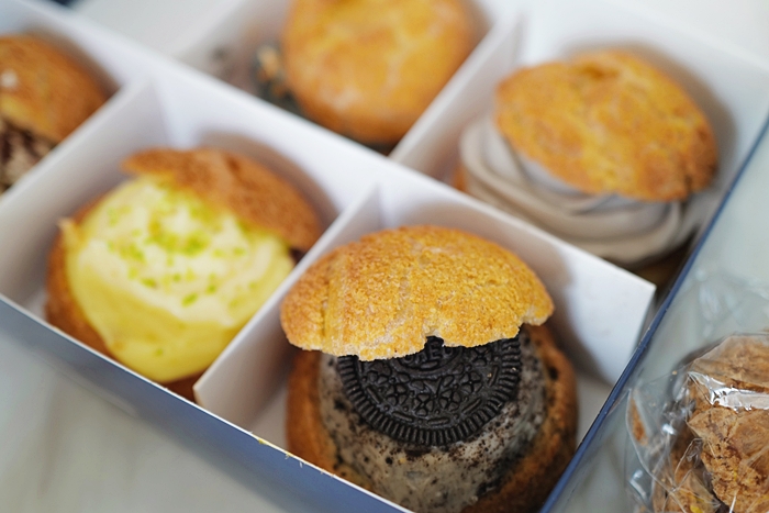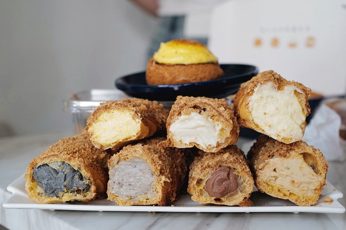 | 這一盒泡芙主要都是店員推薦最受歡迎的口味,老實說看起來真的還滿好吃的,跟一般日式泡芙的視覺感就很不好,且確實餡料非常滿,滿滿的餡料看起來就是爽! |