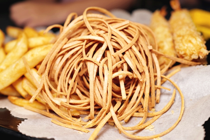 | 這本來看不出來是什麼的食物,後來詢問才知道是炸鱈魚香絲,吃起來很像是餅乾,還滿好吃的,很下酒!!! |