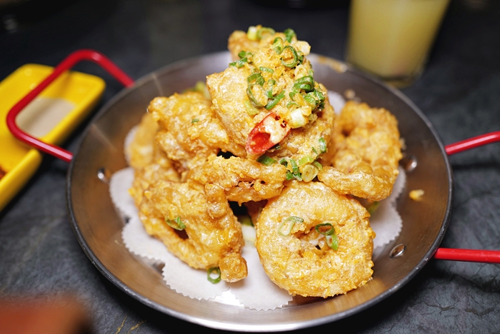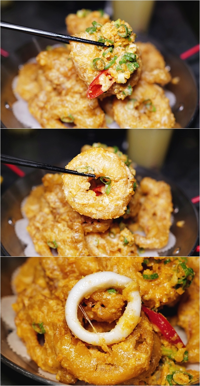 | 金沙中卷也很夠水準,感覺起來隱酒食的廚師中餐底子很厚,金沙酥炸的口感恰到好處,不會處理的太乾,咬下的口感裡面還有一點流沙的感覺,中卷的口感也很彈牙,一吃就是很新鮮的滋味,這一道也超推薦!!! |
