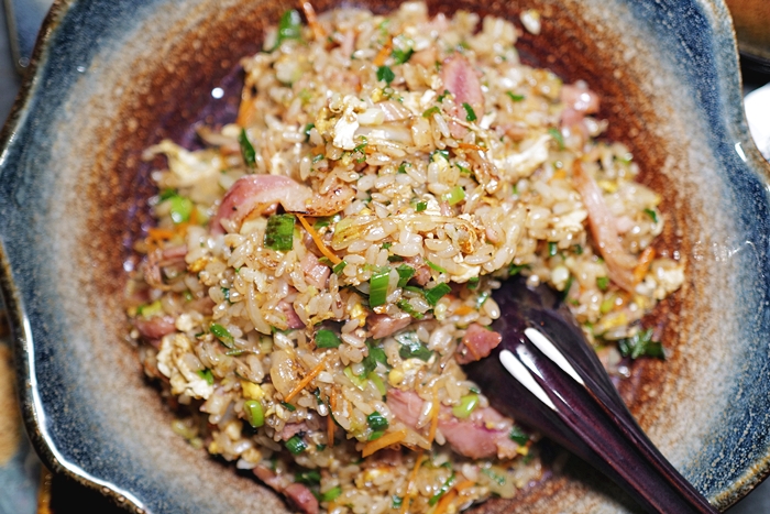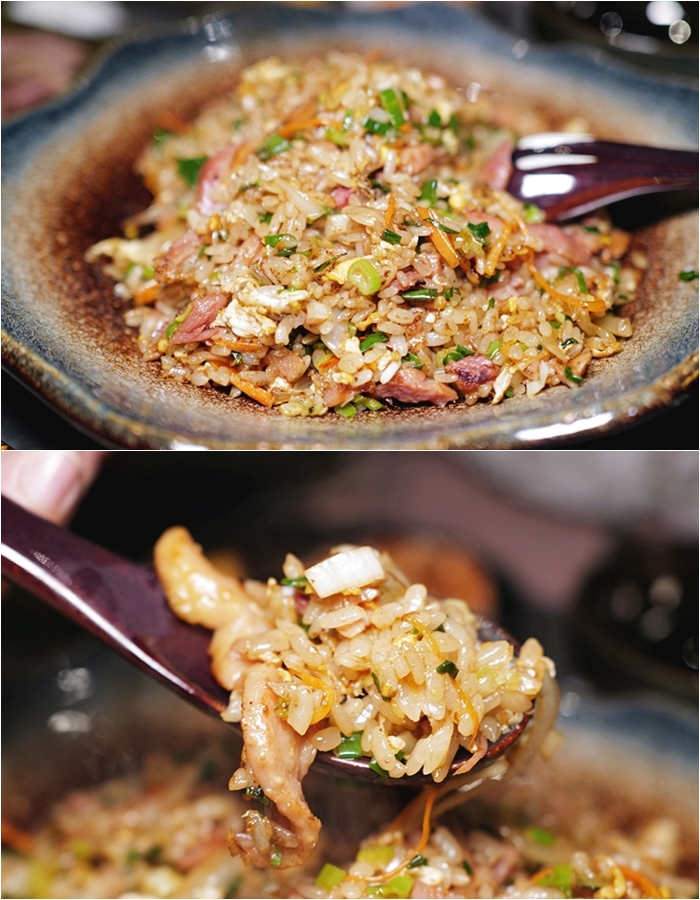 | 想要吃飯麵主食的朋友很推薦這一到三星蔥鴨賞炒飯,雖然隱酒食也有櫻花蝦炒飯,但是來宜蘭就是要吃三星蔥跟鴨賞啊!!!,沒想到鴨賞炒飯也很不錯,隱酒食的炒飯不像我們南部炒的很乾,粒粒分明的那種,是稍微包裹著油比較濕潤的那種,這口感我老婆很喜歡,三星蔥的味道很香! |