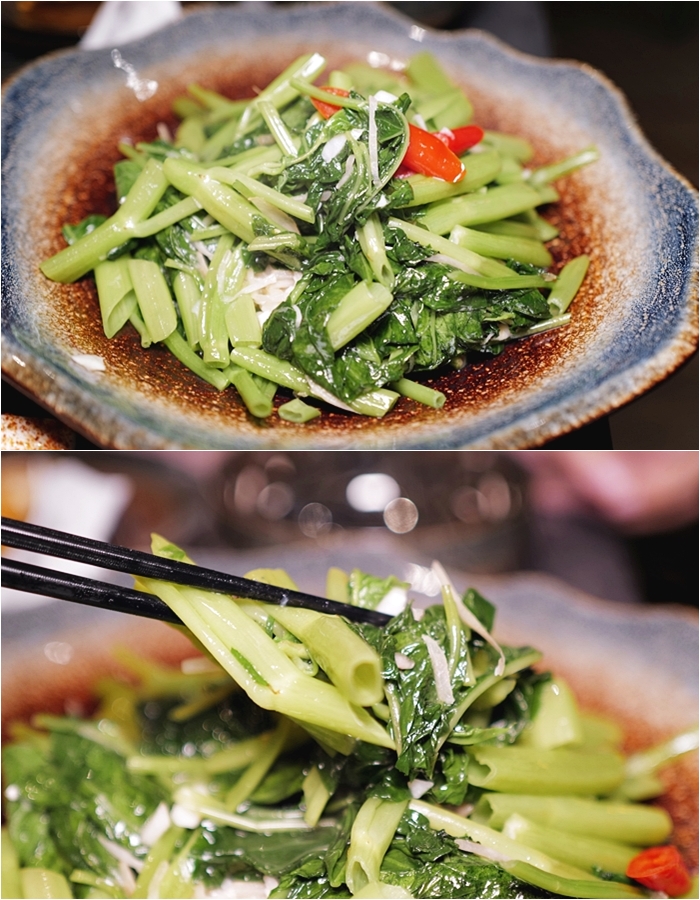 | 來礁溪也同樣要點的在地食材就是溫泉空心菜,吃起來非常脆甜,炒工真的不錯,它們家偏熱炒類的都還滿強的,算是專業的熱炒等級,下酒剛剛好。 |