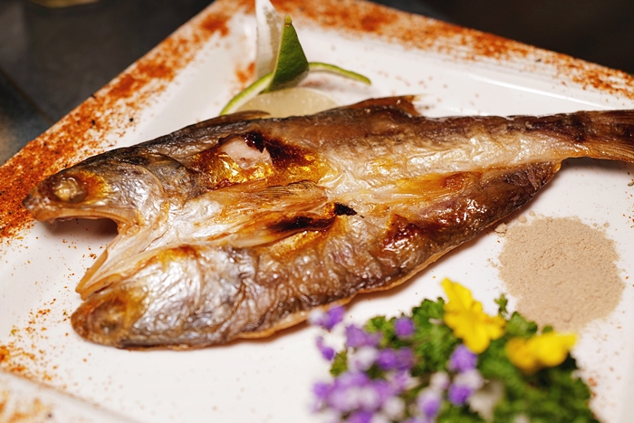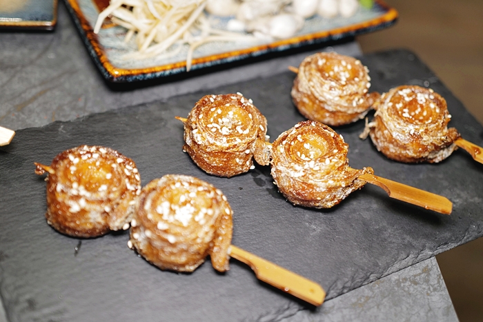 | 第一次看到白帶魚卷燒,看起來就讓人口水直流,吃起來的口感有點像是炸的,酥脆的口感非常誘人,口感也不會太乾柴,頗讓人喜愛的一道。 |
