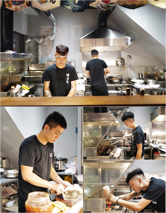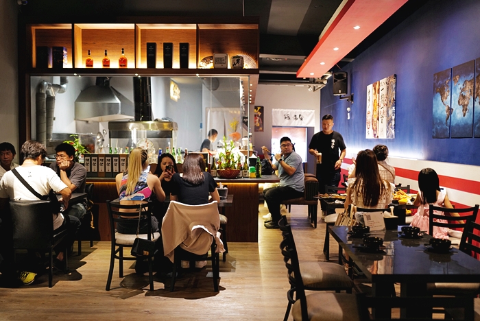 | 座位的選擇也非常多,除了板前的座位以外,還有四人桌跟六人桌的選擇,廚房是大面積玻璃的互動廚房,可以看到廚師們料理的過程,這樣可以直接看到廚房會讓消費者更安心料理的程序,雖然說是餐酒館,但是裡面有些小裝潢跟布置偏向一點點日式風情。 |
