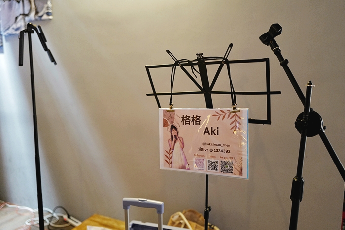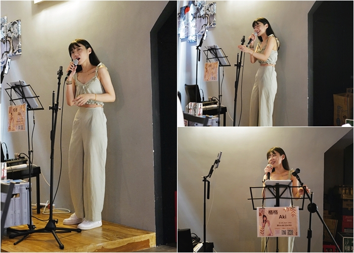 | 當天駐唱是很受歡迎的格格Aki,除了獻唱自己的拿手歌曲以外,客人們想聽什麼歌也可以現場點唱,可愛甜美的聲音搭配微醺的夜晚最適合。 |
