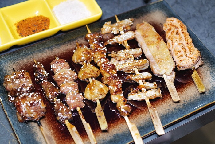 | 串燒拼盤最適合多人來一起點,可以把飲酒食的招牌串燒一網打盡,烤工也還不賴,從生食上炭火烤熟需要一點時間等待,且一定要趁熱吃才能吃到鮮嫩的肉汁,雞心烤的很美味,雞屁股也很油,火侯拿捏的不賴。 |
