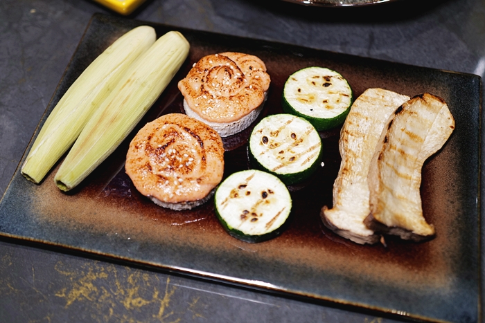 | 節瓜跟杏鮑菇也都烤的不錯,玉米筍大推,玉米筍都很大隻,且水分飽滿,連女兒都愛吃! |