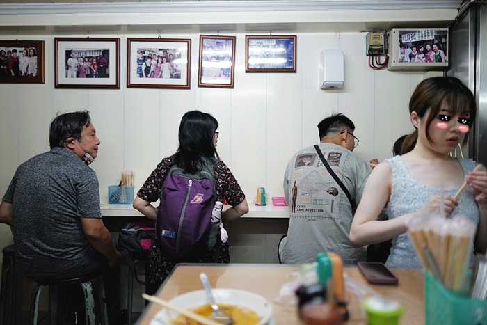 | 店裡面的位子小小的,基本上都需要共桌,所以無法接受共桌的朋友要再思考一下,小小的空間但是打掃的還滿乾淨的,除了店內的桌椅以外,街邊也有一張四人桌,有一半的人都是在地人來外帶。 |