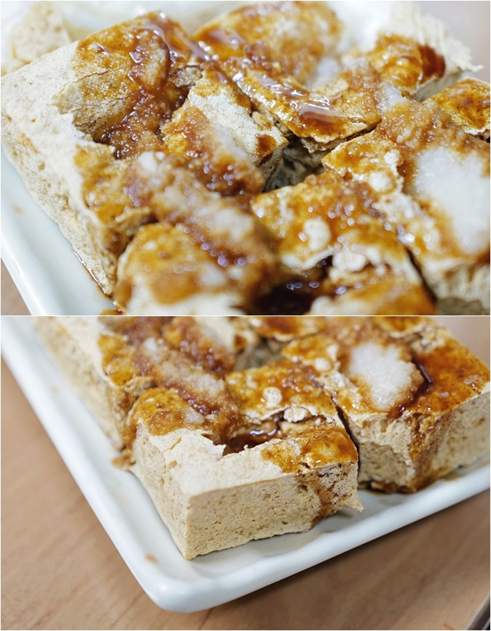 | 脆皮臭豆腐有大小份之分,上面除了醬料以外還有蒜汁,吃起來確實非常脆口,且沒有惱人的油耗味,整體的味道還是淡了一點,算是好吃的臭豆腐,但是沒有特別驚艷,所以瞬間就想起了花蓮玉里橋頭臭豆腐真的很厲害。 |