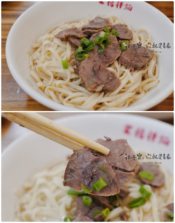 | 先試試看大眾最能接受也最常吃的牛肉拌麵,牛肉是使用牛腱心,吃起來很軟嫩,比起一般牛肉麵的牛腱心硬梆梆的口感相比起來,金榜拌麵的牛肉確實很不錯,且奶香味非常濃郁,油脂也很甜。 |