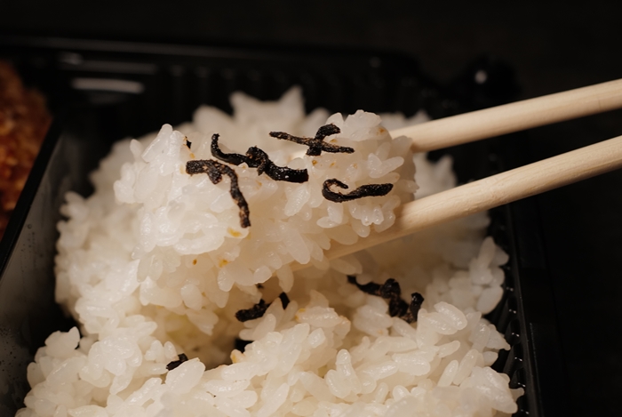 | 特別標榜是使用日本秋田美人小町米,秋田美人小町米跟新之助的差別很明顯,相較起來秋田美人小町米更適合台灣的炊飯工具來使用,口感渾圓飽滿且不太黏,看起來頗有光澤,搭配一些昆布鹽,滋味還算不錯。 |