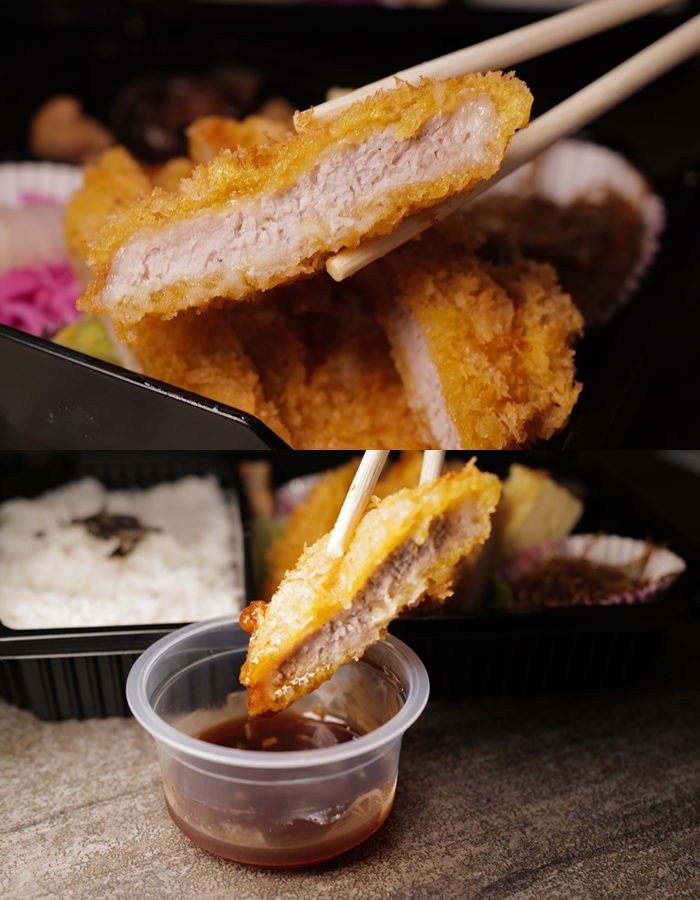 | 麵衣處理的還不錯,搭配的豬排醬偏甜,但是炸豬排的口感一口卡滋聲頗為滿足,確實有把精緻的感覺凸顯出來。 |