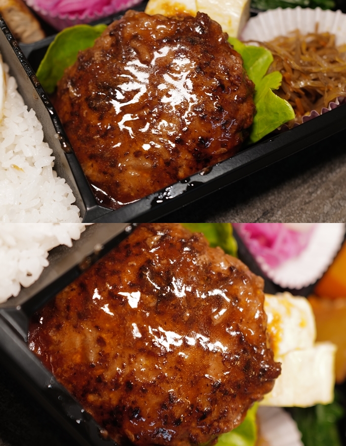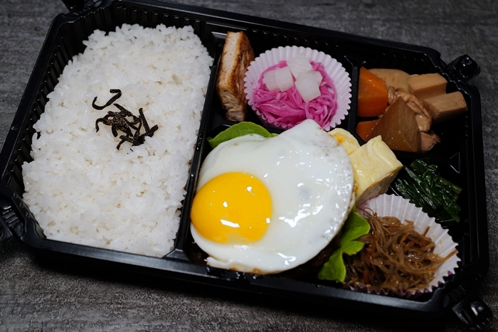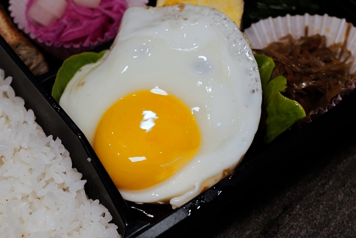 | 漢堡排便當在台灣相當少見,這類型的便當深受很多大小朋友跟的喜愛,一顆半面荷包蛋看起來就很可口,攪拌在白飯裡我覺得滋味會更好。 |
