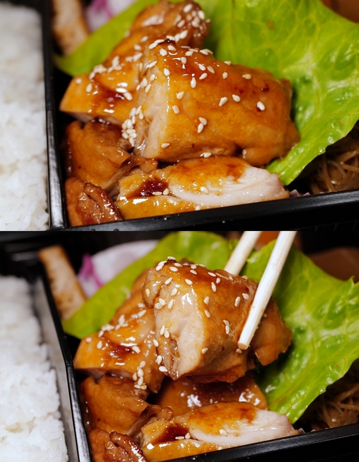 | 照燒雞的醬汁似乎跟以前比起來調了淡一點,吃起來的負擔不會感覺那麼重,雞肉也都是使用雞腿肉。 |