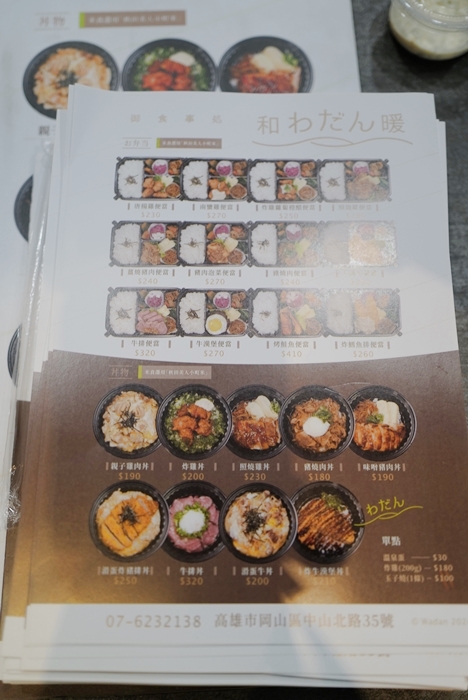 | 和暖wadan御食事處的日式精緻便當確實看菜單感覺起來超日本,跟我們在日本吃到的便當菜色差不多,配色也很講究,配色也很豐富,看起來就相當的可口,但是價位當然也要價不斐,突破200元的便當價格似乎對高雄人來單價也較高,主要是有別於一般台式便當的配菜跟主食,另外強調便當不加味素,也是主打健康,還有便當盒本身也是環保餐盒。 |