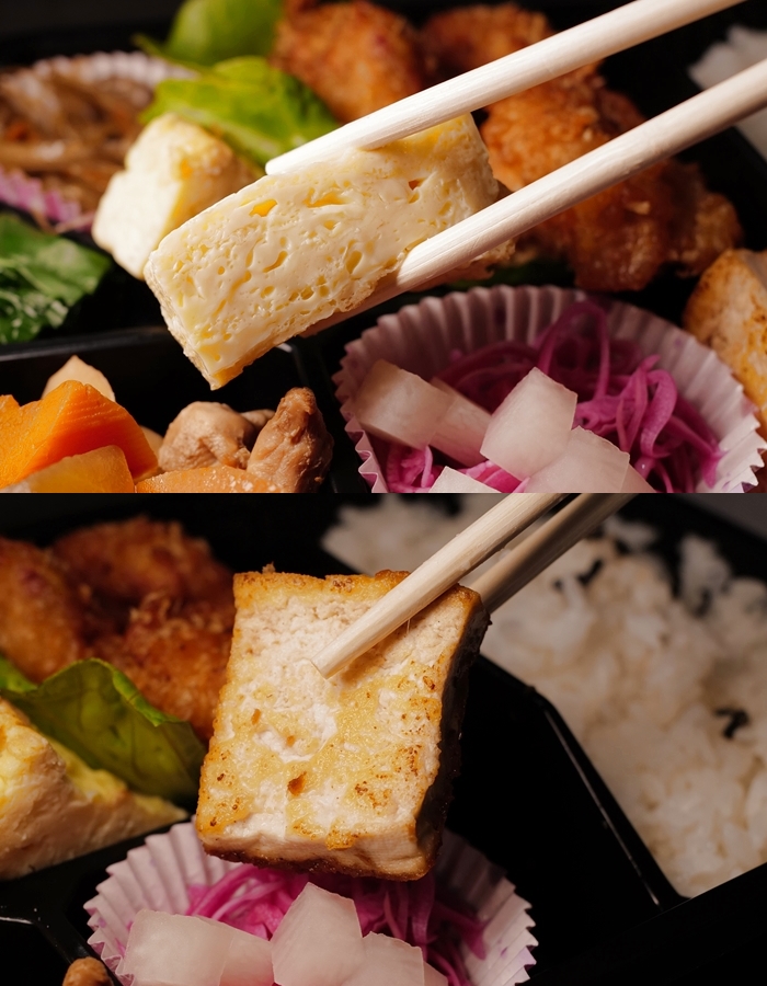 | 目前便當的配菜都是一樣的,變動的大部分都是主菜,詢問過後才知道配色也會不定期更換,配色完全是日籍廚師特別搭配出來的顏色,顏色就是很豐富,讓人食指大動。 |