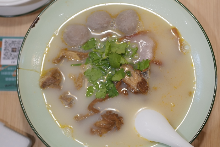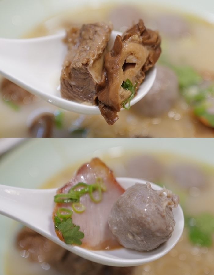 | 挑的四菜分別是牛腩、肥腸、牛丸跟叉燒,不得不說牛丸的品質不錯,一口咬下那粉彈的口感相當討喜,加上那濃郁的牛汁味讓我超愛,還有肥腸跟牛腩也滷的非常入味,一整個大滿意! |