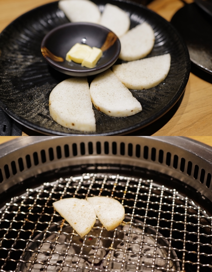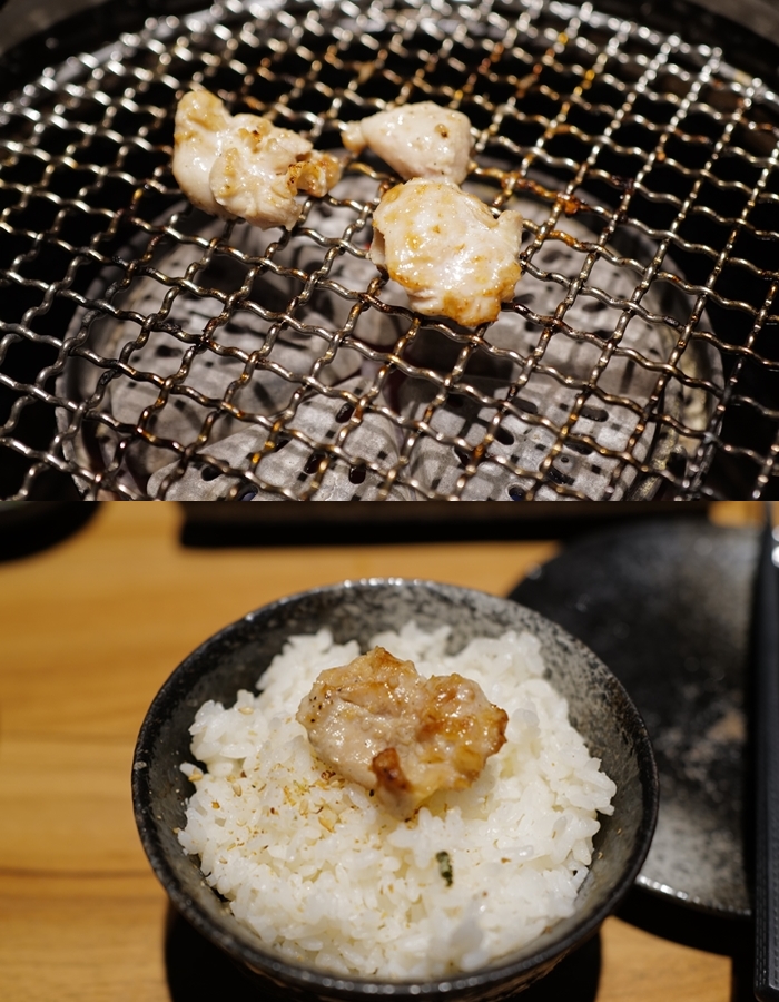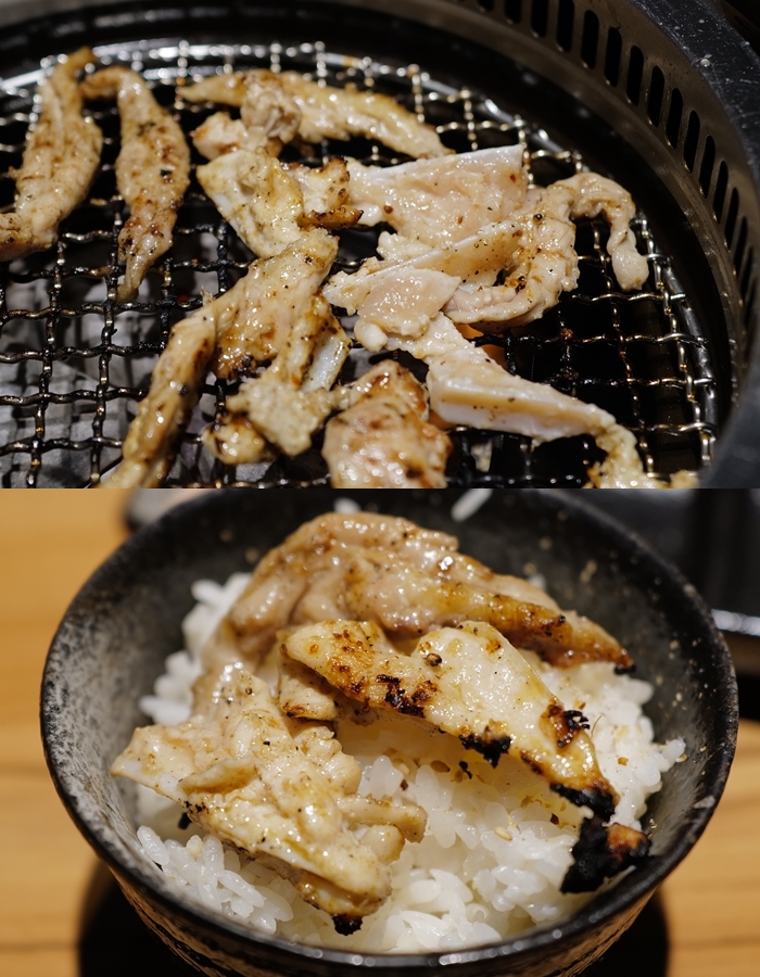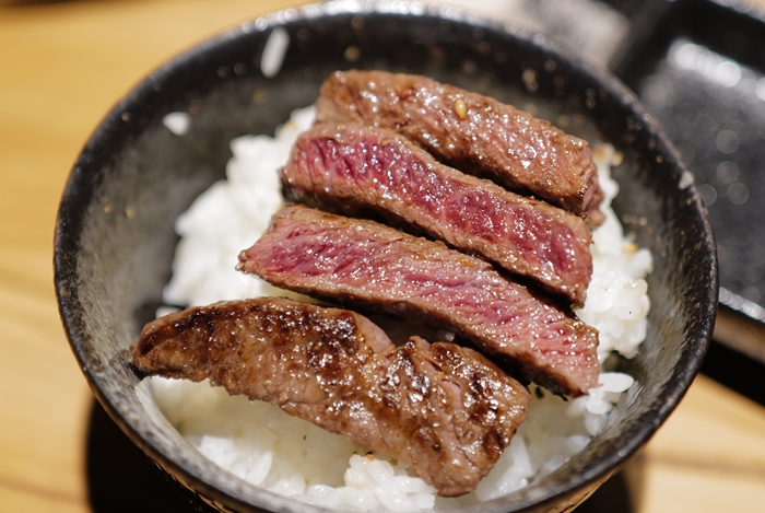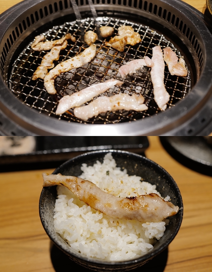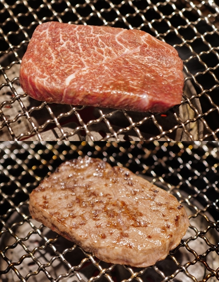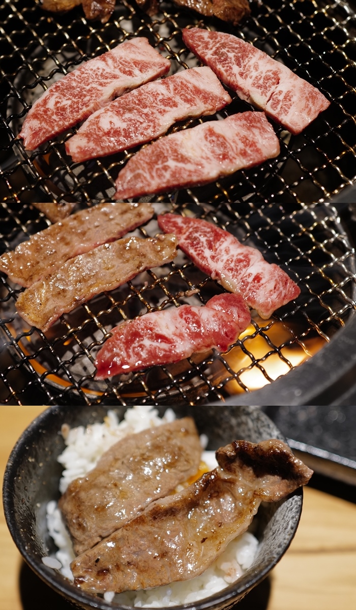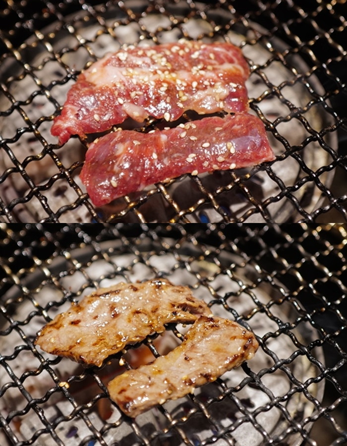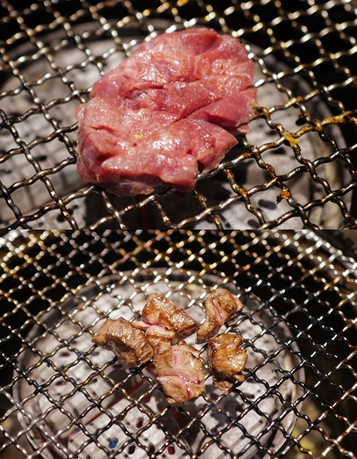 | 考完後入口後口感還滿嫩的,也有些油脂,可惜油脂比較沒有甜度,目前在台灣吃過不管是屋馬還是茶六一堆燒肉店,大多和牛的油脂都沒有什麼甜度,不過相比其他燒肉大店,算是正常發揮了。 |