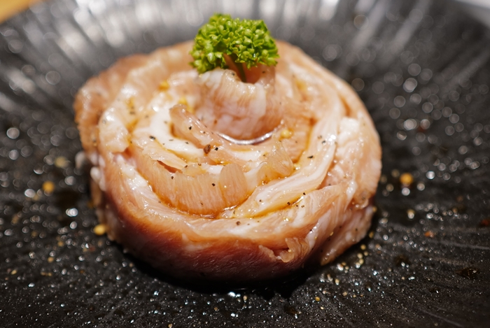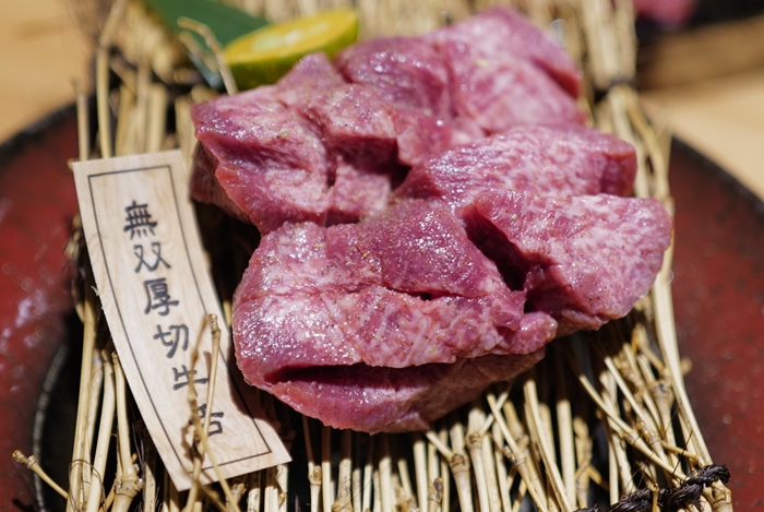 | 無雙的厚切牛舌確實比起其他店家賣相好了非常多,夠厚以外也幫客人改刀改的不錯,讓客人烤完後可以方便剪開,吃起來油脂跟甜度有超乎我的想像,我個人對他們的牛舌還挺滿意的。 |