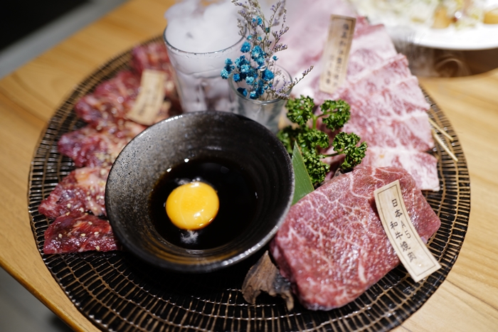 | 點的和牛盤隨之就上來了,基本上我還是會推薦大家去日本吃和牛絕對比較划算,台灣的燒肉店基本上用的和牛即使是日本的,也不會真實的跟你說用哪個地區的和牛跟哪個部位,在日本就算是A5和牛也是會有分部位,不同部位價差也很大。 |
