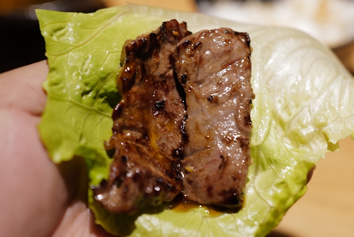 | 因為橫膈膜的油脂較多,所以很適合包著生菜一起食用。 |