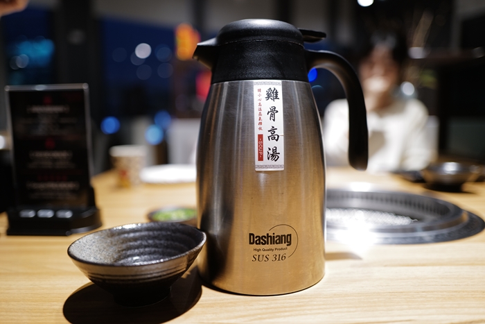 每一桌都會提供雞骨高湯,本以為是濃湯還滿開心的,對於小孩子來說有濃湯泡飯就可以處理小孩子的煮食了,但是燒肉無雙的雞骨高湯是清湯而不是白湯,跟屋馬的雞骨濃湯喝起來的味道差滿多的,這一部分屋馬大勝! |