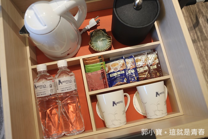 | 茶水點心櫃一目了然,不管是咖啡包還是茶包的量都算是方常大方。 |