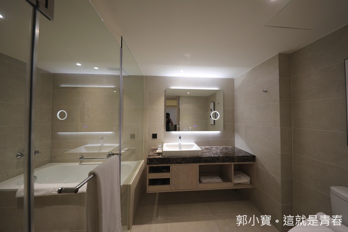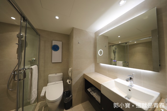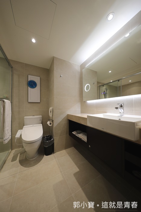 | 馬桶是使用免治馬桶,化妝鏡兩個人一起使用絕對沒問題,衛浴設備都是使用TOTO的品牌,也算是攻頂了,我喜歡它們的化妝鏡,裡面內崁的放大鏡很實用,上面還有時鐘顯示器。 |