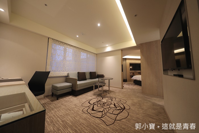 | 飯店人員也帶我們參觀了同一層樓的商務客房,這商務客房還有一個小客廳相當溫馨,主要是位於邊間,所以這房型較少。 |