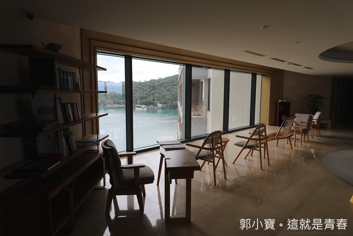 | 雲品酒店在每一層樓的大廳都願意犧牲掉非常大的空間,就是為了讓房客在電梯打開的那一霎那就可以欣賞到日月潭的美景,採用全景式的落地窗讓風光一覽無遺,隨時都有人坐在每層樓的大廳欣賞這美景,我個人也超愛這樣的貼心,真的好美! |