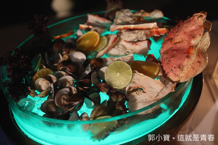 | 還有很多海鮮食材也通通都在這邊,重點是帝王蟹腳無限供應,帝王蟹腳都已經去好殼了,一挖就起來了,蟹肉也不會水水的,一口咬下還有彈性非常美味,還有很多貝類也都很新鮮,比起一般的自助餐廳吃到飽來說,這邊的海鮮食材選擇性更多且都更高檔,白蝦非常的鮮甜,基本上就是狂吃就對了XD |