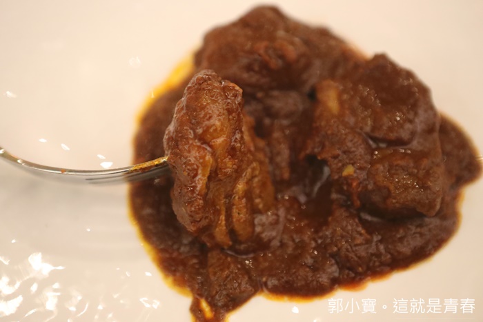 | 還要推薦這一道印度咖哩奶油雞,上來的時候我們完全不知道這是什麼,但是吃了一塊就一整個愛上了,印度咖哩的辛香料超級迷人又辣口,雞肉非常的嫩,辣度真的頗高所以要斟酌一下,但是如果妳跟我一樣喜歡吃辣,那決定要點上一盤嗑一下了。 |