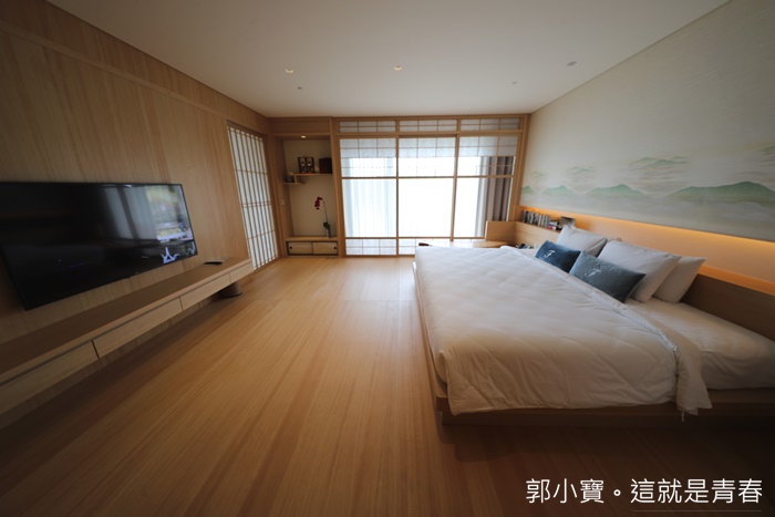 | 房間主要還是以木造地板為主,但是這麼和風的房子真的非常屌,簡單乾淨又舒適,床墊的部分就不用說了,肯定好睡得以外,雲品家的枕頭都非常好躺,保證你一睡到天明,房間兩側都有門可以通往廁所。 |