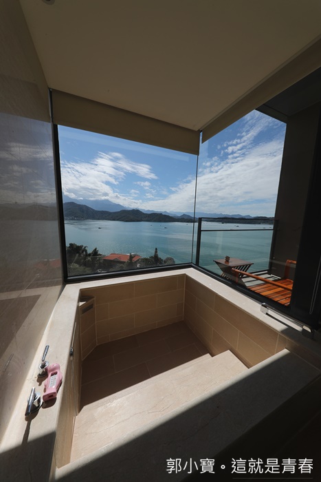 | 雲品酒店湖景房的衛浴空間有兩種,一個浴缸是面日月潭的也有沒面日月潭,我個人比較喜歡面日月潭的位子,但是都會有陽台可以觀賞夕陽跟湖面,這樣住湖景房才有意義阿XD |