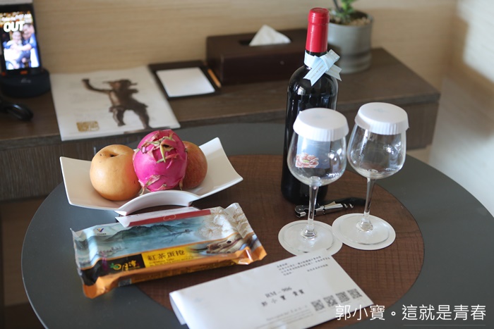 | 不同的入住方案有不同的小驚喜,我們在進房的時候就發現的桌上有一瓶紅酒,紅酒是雲朗觀光集團自己在歐洲的酒莊品牌,還有日月潭知名的紅茶蛋餅點心。 |