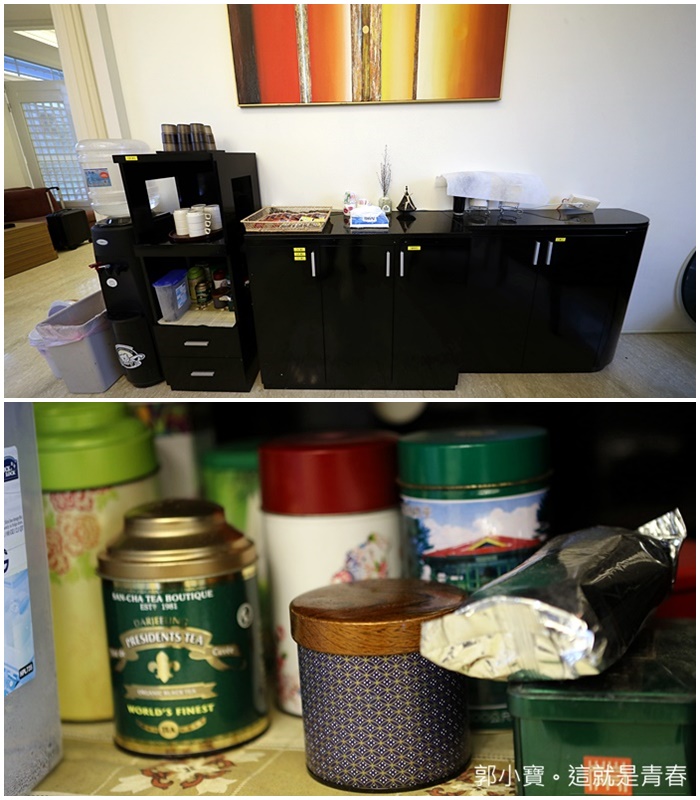 | 大廳中間的茶水區也都是房客可以免費使用的,頂下民宿主人的茶葉罐也可以拿出來泡,