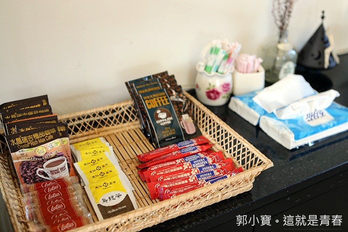 | 桌面上還有咖啡包跟茶包同樣是免費取用的,還有餅乾小點心,真的應有盡有。 |