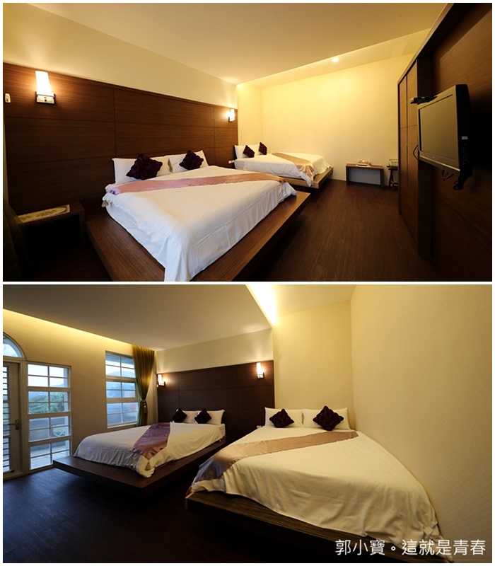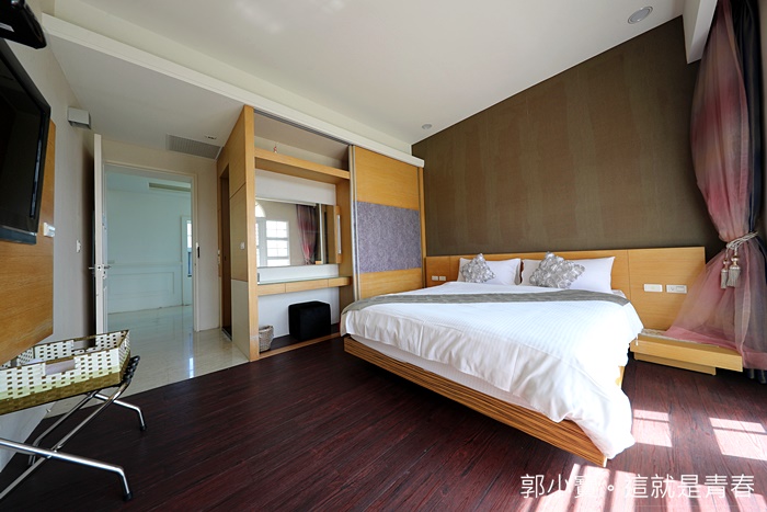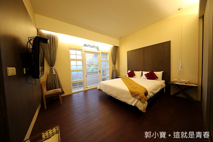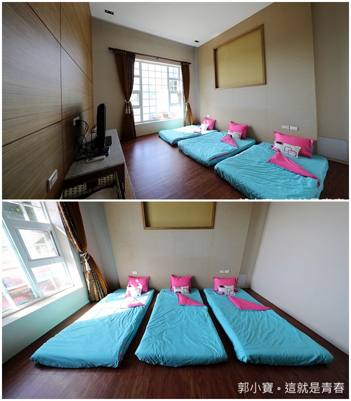 | 民宿主人讓我們參觀其他房型,其實雙人房的部分都是大同小異,每一間房間的坪數都還滿大的,且打掃的都非常乾淨,床墊也都很不錯,抱枕都是玫瑰花抱枕,也很適合情侶入住,重點他們房間的隔音都很好。 |