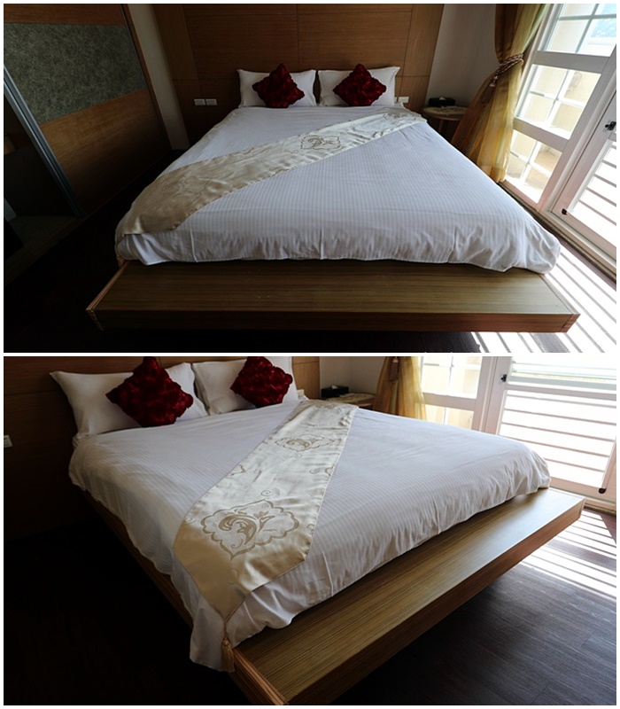 | 翠山莊的床墊非常好睡,不會太軟也不會過硬,床架的部分是特別訂做的,床板有突出的置物板,我很喜歡這樣的置物踏墊功能設計,除了可以放置衣物以外也可以放置其他東西。 |
