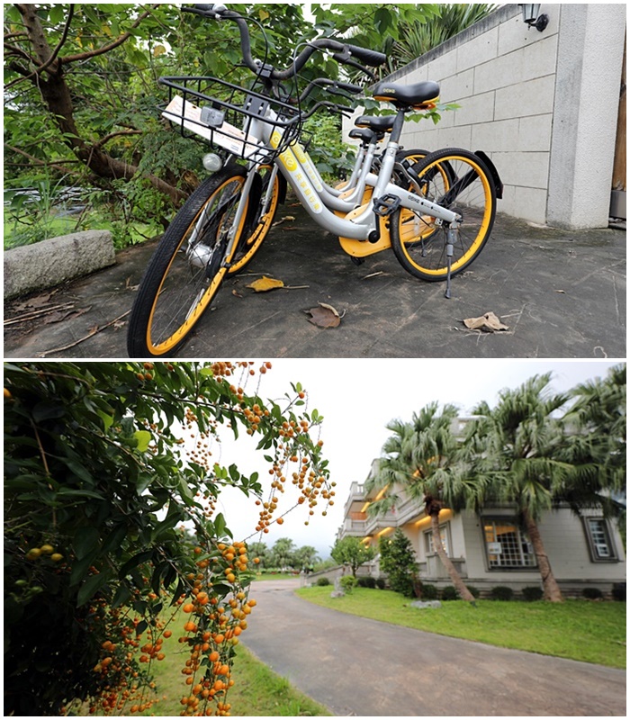 | 門口還有腳踏車可以租借,對於可以在山林鄉野間單車遊也覺得非常的舒服,翠山莊內的植栽非常多,庭園打造的非常有熱帶風情,一個隱世空間真的超特別的。 |