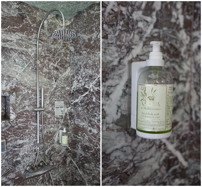 | 淋浴間的設備也都滿高級的,屬於歐規系統的淋浴設備,淋浴間裡面都有沐浴乳跟洗髮乳,是二合一的部分,洗起來不會太乾我還滿喜歡的。 |