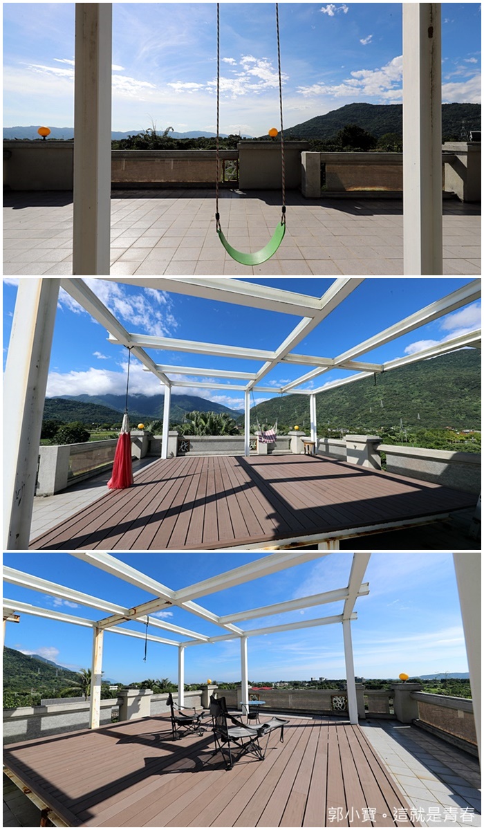 走到頂樓一看就是另一個完全不一樣的風景,頂樓還有鞦韆也太妙了,花蓮的好天氣真的讓人陶醉,在這樣的美景下盪鞦韆也是不一樣的樂趣。