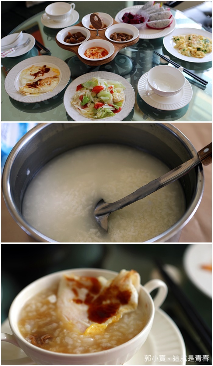 沒想到就連早餐都可以那麼豐富,子餐還有飯後水果真的都快跟飯店一樣的規格了,我真的很喜歡它們家的早餐,再加上都市生活久了,真的很久都沒有在早餐的時候喝白粥了。