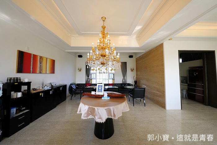 | 一進入大廳後就會被眼前的氣派震驚到,幾乎都是花蓮最知名的大理石打造而成,水晶吊燈也是一盞一盞的掛在天花板上,整棟民宿都是採取中央空調所以非常涼爽,也因為空間夠大就算不開空調也很舒服,雙面採光讓陽光充足不會讓人有冰冷的感覺。 |