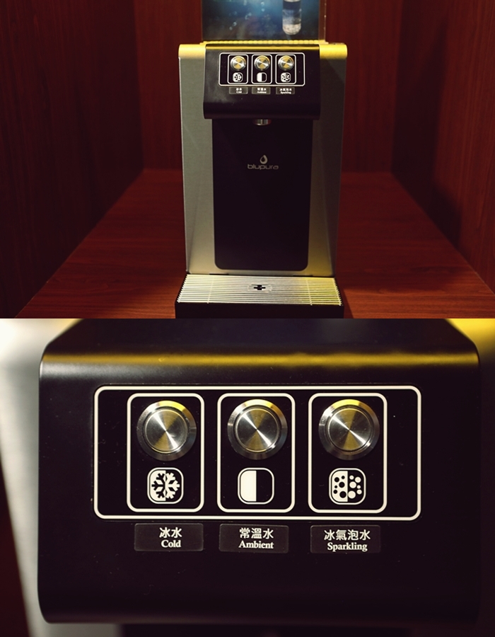 | 電梯旁邊也有飲水機,除了有冰水跟常溫水以外,特別的就是還有小孩子最喜歡的氣泡水,我們要出門的時候都會直接在這邊裝冰的氣泡水。 |