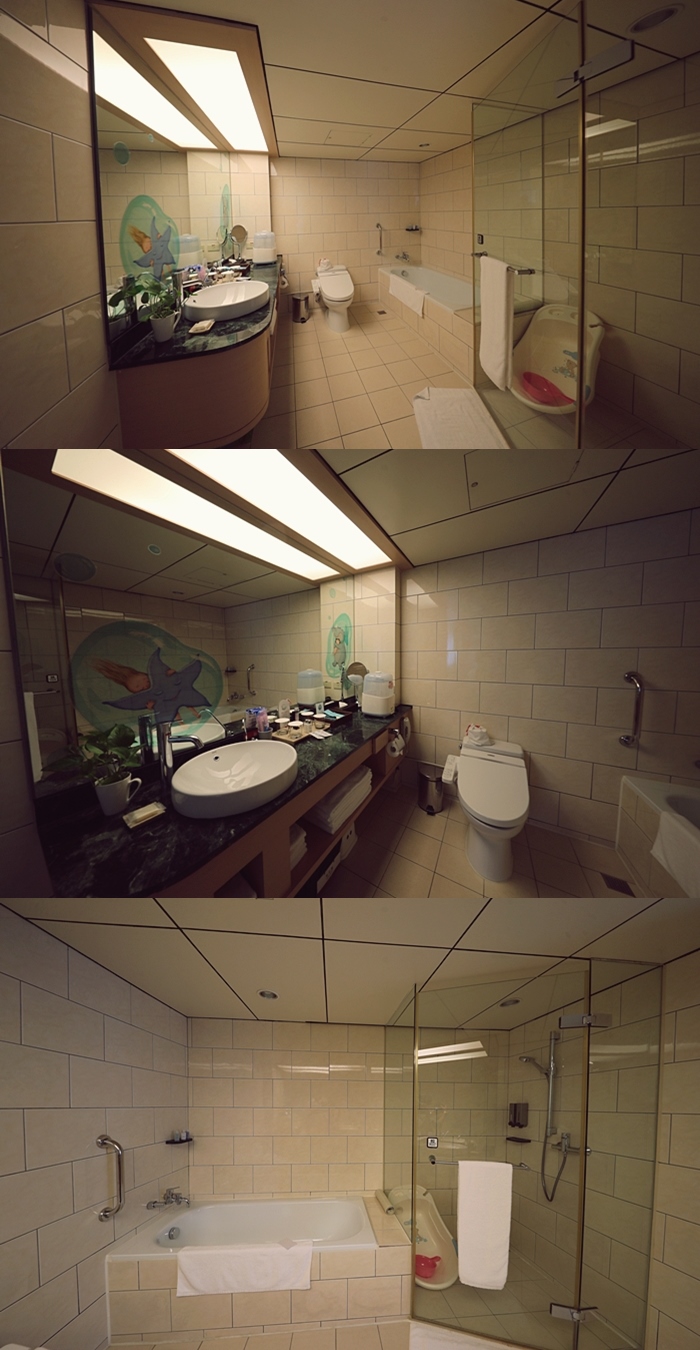 | 廁所的空間也非常大,幾乎是一間小套房的空間了,雙人使用的洗漱台,免治馬桶及乾濕分離的設計,浴缸也滿大的。 |