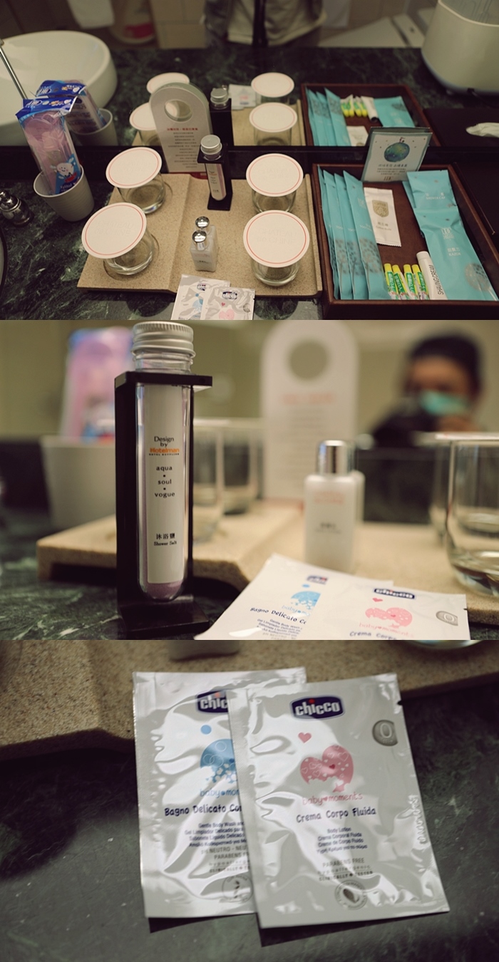 | 盥洗備品一應具全,因為花蓮翰品酒店目前提倡環保,所以一次性備品翰品不會主動提供給客人,如有需要可以電話告知櫃台,沐浴鹽太妃非常喜歡,還有特別準備嬰幼兒的沐浴用品,是我家們固定使用的chicco,算是很頂尖的品牌,很捨得花,不愧是親子渡假飯店XD |
