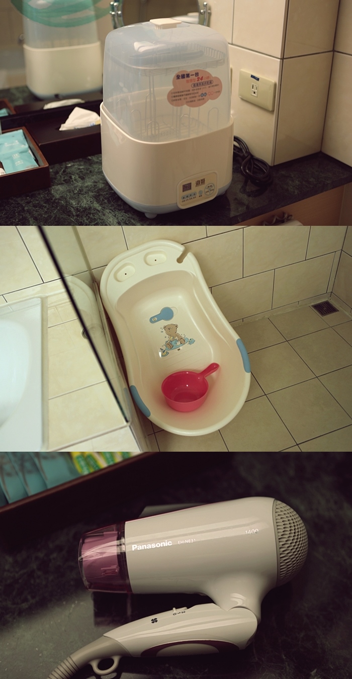 | 甚至還有提供奶瓶消毒鍋,這個真的太實用了,對於我們家嬰皇還有在喝奶的階段可以看到消毒鍋真的比看到什麼都還開心,另外也有準備嬰兒澡盆,吹風機是國際牌的,小隻了一點,長頭髮的女生吹起來可能會有一點吃力。 |