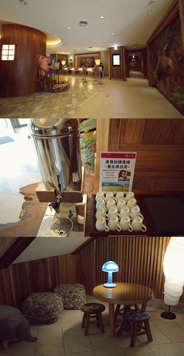 | 自從花蓮翰品酒店轉型親子度假酒店以後,也與台灣插畫家幾米合作,打造成幾米主題的親子飯店,非常受到小朋友的喜愛,從飯店外到走進飯店內都可以感受到濃濃的幾米風格,大廳還有特別為小朋友設置的兒童桌椅,迎賓茶水選用在地的養身黑豆茶。 |