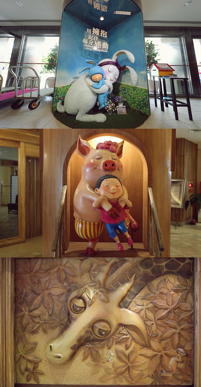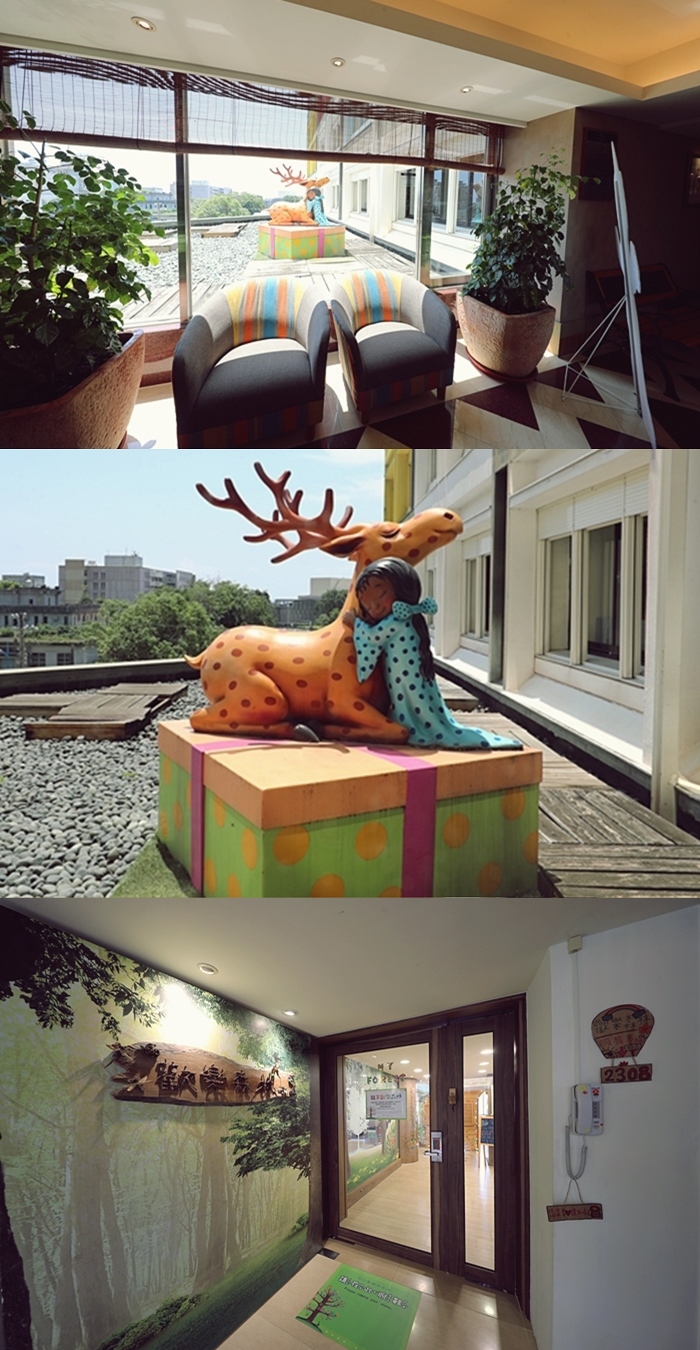 | 花蓮翰品在很多不為人知的角落都有幾米的作品,尋找幾米作品其實也是一種樂趣,不過最受歡小朋友青睞的還是三樓的歡樂森林,歡樂森林是有管制的地方,需要有房客特別的門卡才可以進入。 |