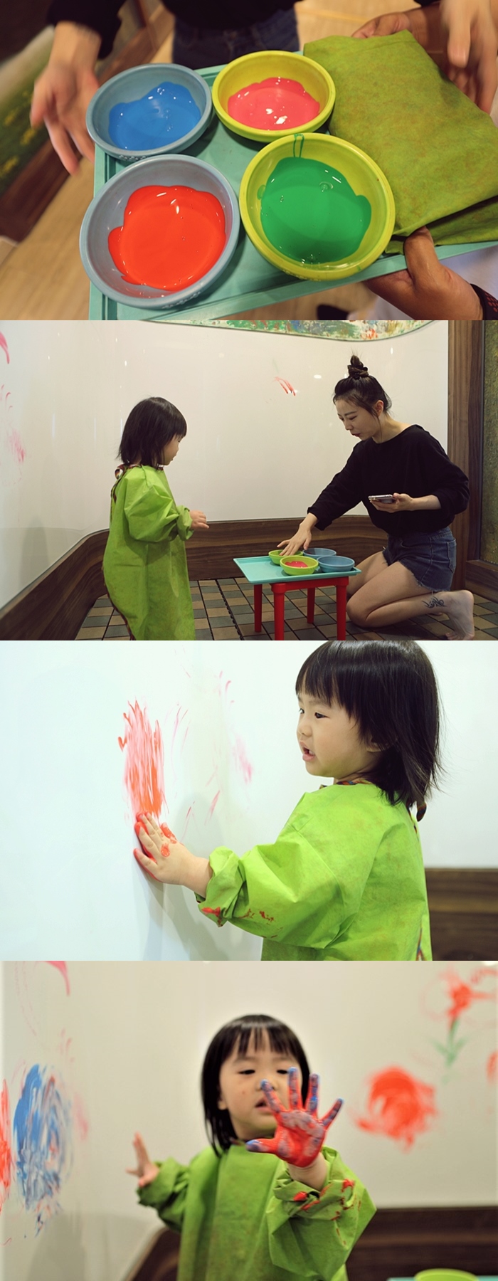 | 歡樂森林裡面最受歡迎的就是歡樂手繪室,是小朋友可以自由發揮創意的地方,因為歡樂手繪室真的非常熱門,所以一定要預約,因為這體驗是有場次的,手繪室打造的很棒,還有盥洗的空間配備也都建置的很完整,雖然有提供圍兜雨衣,但是盡量讓小朋友穿上居家舒適的衣物,沾上顏料也不用擔心。 |